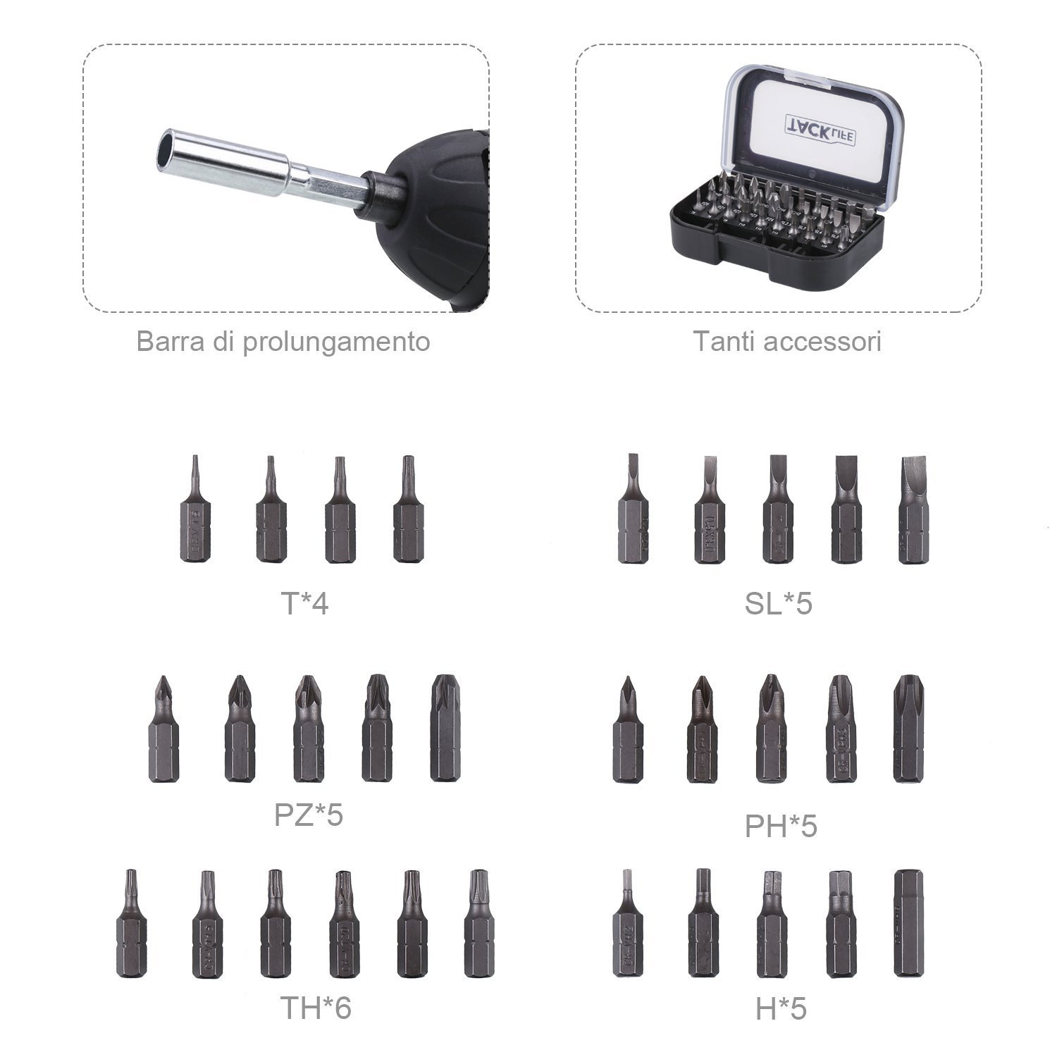 • ★ CONTENIDO DEL PAQUETE: 1×TACKLIFE SDP50DC Atornillador, 30x Taladro cambiadores, 1×Biela, 1×Manual de usuario,1×línea de USB