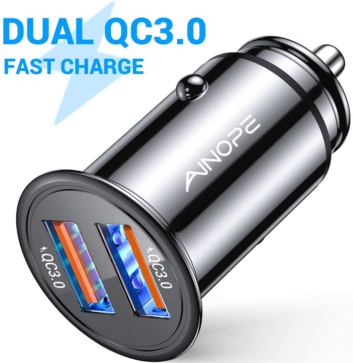 - ⚡ PUERTOS DOBLES QC3.0 CARGA RÁPIDA: los puertos duales bombean 36W en total. El cargador para automóvil puede cargar dos dispositivos simultáneamente a la velocidad QC3.0 y cargar de 0 a 55% en 35 minutos; proporciona una velocidad de carga 4 veces más rápida para dispositivos compatibles.
