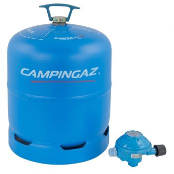 Cartucho de gas butano comercial para aparatos de cartucho de válvula acorde con la normativa europea.