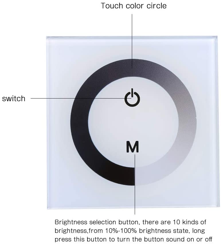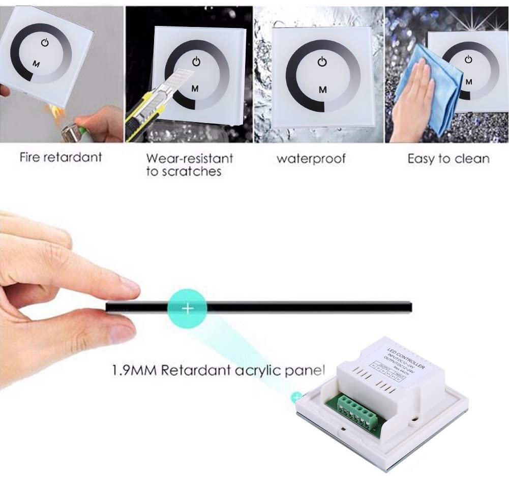 - Atenuador de LED de alta gama con panel táctil de vidrio, suave al tacto y fácil de limpiar.