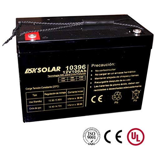 Las baterías de ciclo profundo de gel se caracterizan porque no necesitan mantenimiento alguno; esto es porqué su diseño con vasos sellados no requiere una revisión constante de sus niveles de ácido; también es bueno saber que las baterías de ciclo profundo de gel no emiten gases nocivos y tienen un funcionamiento excelente en caravanas o barcos, gracias a sus elevadas prestaciones y a su gran duración por los materiales de alta gama con los que están fabricadas; características: – tipo de batería: gel ciclo profundo- voltaje: 12v – capacidad: 100 ah- energía: 1, 3 kwh – dimensiones: 307 x 169 x 211 x 215 mm- terminal: m8- vida estimada (25ºc): 12 a 15 años- máx; corriente descarga (25ºc): 1000a (5s)- autodescarga (25ºc por mes): 3%- resistencia interna (carga completa a 25ºc): aprox. 6. 50 mω- voltaje de carga (25ºc) uso cíclico: 13, 6-13, 8v- voltaje de carga (25ºc) float use/standby use: 14, 4-14, 7v- máxima corriente: 22, 50a- capacidad afectada por temperatura a 40ºc: 102%- capacidad afectada por temperatura a 25ºc: 100%- capacidad afectada por temperatura a 0ºc: 90%- capacidad afectada por temperatura a -15ºc: 70%- peso: 30, 5 kg.