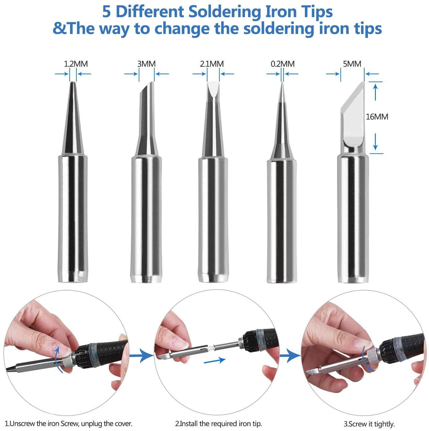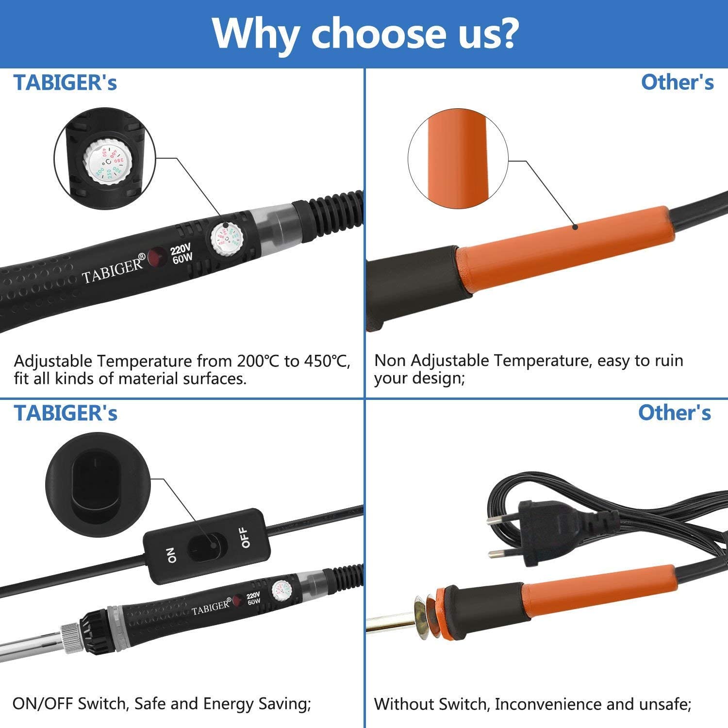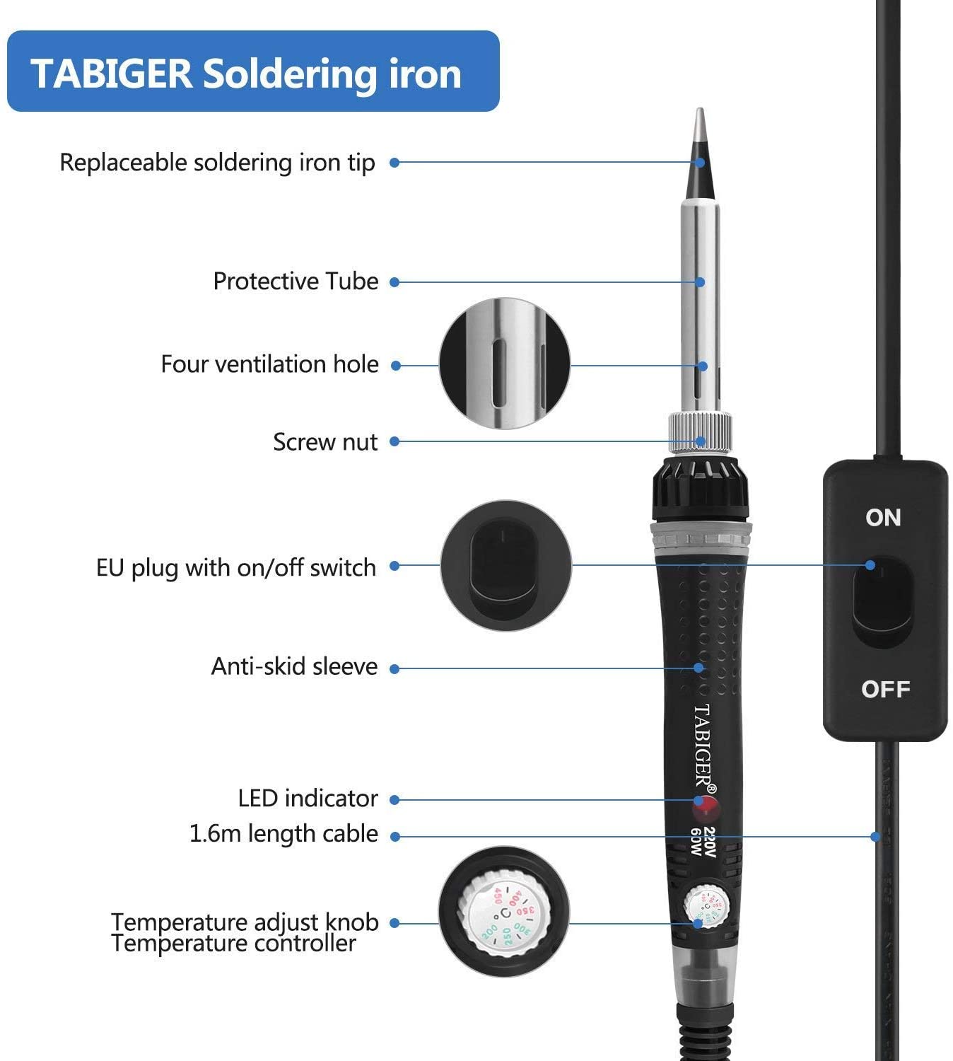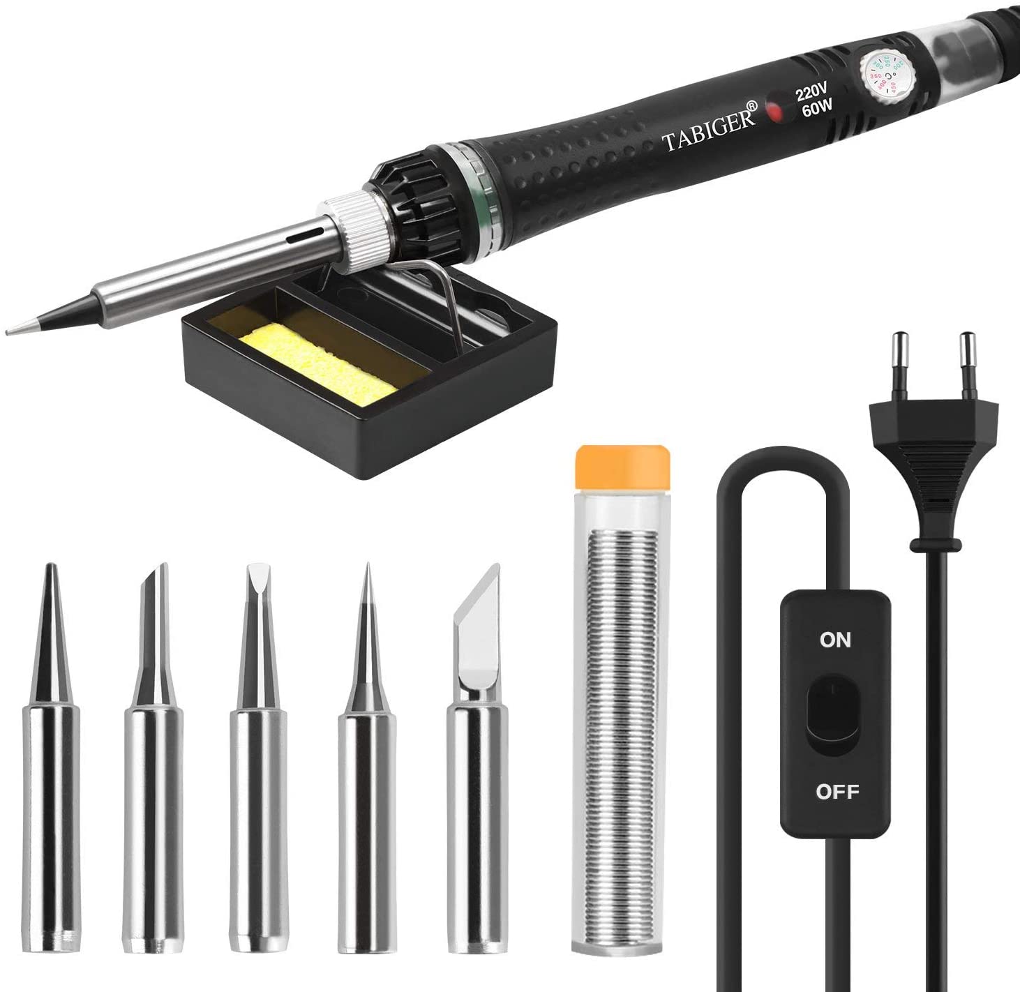 Tabiger 9 en 1 kit de soldador eléctrico, 60W / 220V, temperatura ajustable 220 ℃ -450, pantalla led e interruptor de encendido / apagado, con todos los accesorios, lo que necesita.
