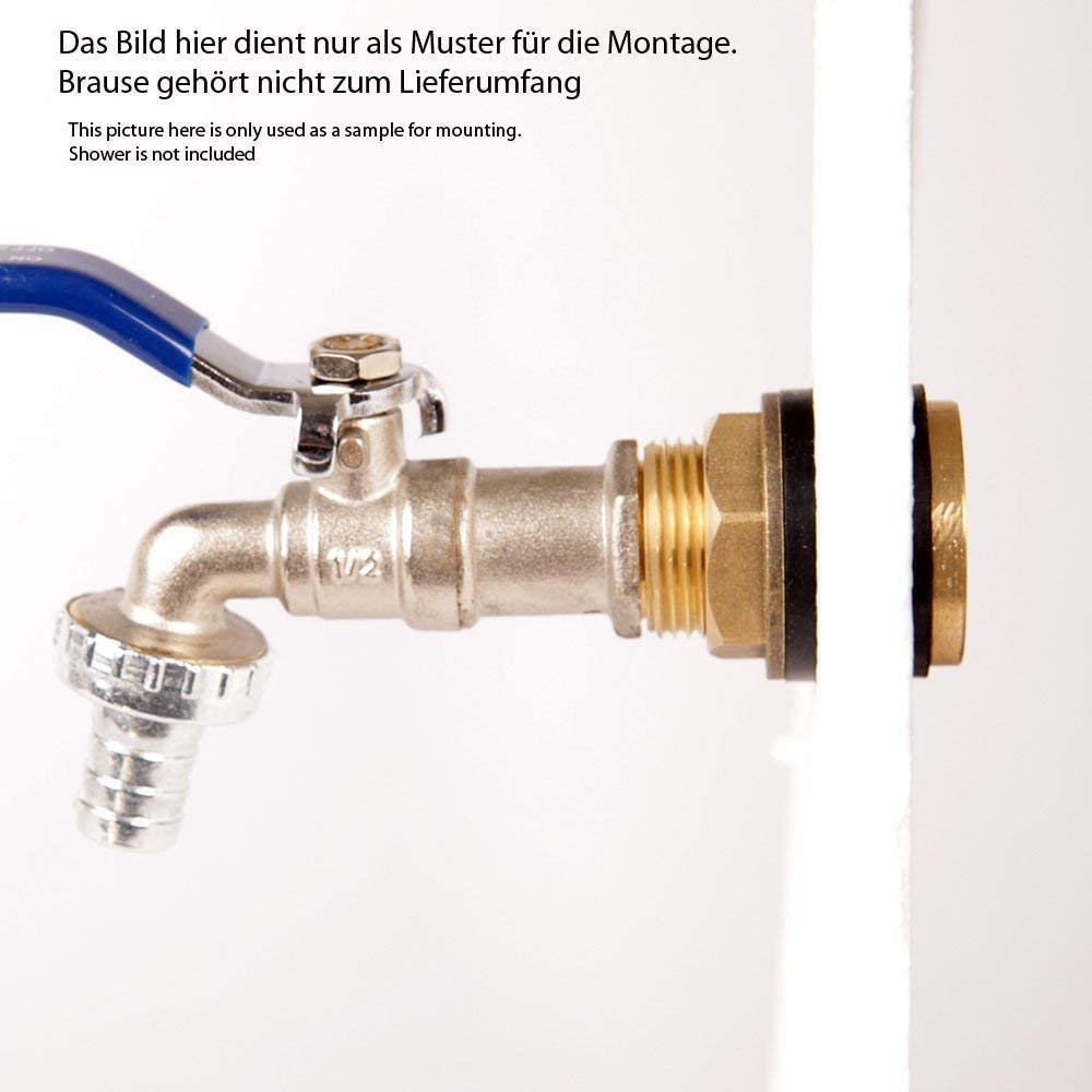 Rosca 3/4 «rosca interior x 1» Rosca exterior de 2 piezas, completo con 2 juntas compatible con todos los barriles de espesor de hasta 30 mm de grosor de pared Pared Grosor (entre métrica): 1 Diámetro orificio de 30 mm, 2 piezas, completo con 2 juntas datos técnicos: Mínima en el depósito hasta 33 mm. Brida/tuerca exterior: Ø 45 mm brida/tuerca Grosor: 2,5 mm Ancho de llave tuerca: 37 mm rosca interior: 3/4 «rosca exterior: 1 ‘aquí sólo de comprar una pieza (2 piezas, completo con 2 juntas).. La imagen con la llave sólo sirve como patrón para la utilización, grifo no está incluido en el envío