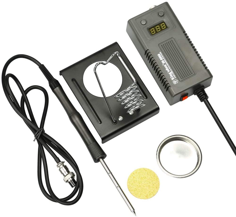 Herramientas de soldadura práctica: Esta es una herramienta de soldadura completa que es práctica y económica. Este kit viene con una punta reemplazable de alta calidad que le ahorra dinero; Una almohadilla de espuma rígida evita que la cabeza de hierro queme otros elementos mientras ayuda a eliminar el exceso de soldadura de la punta para el próximo uso; Adecuado para mantenimiento eléctrico, soldadura doméstica de bricolaje, como equipos de audio, artesanías, modelos de hobby, joyería.