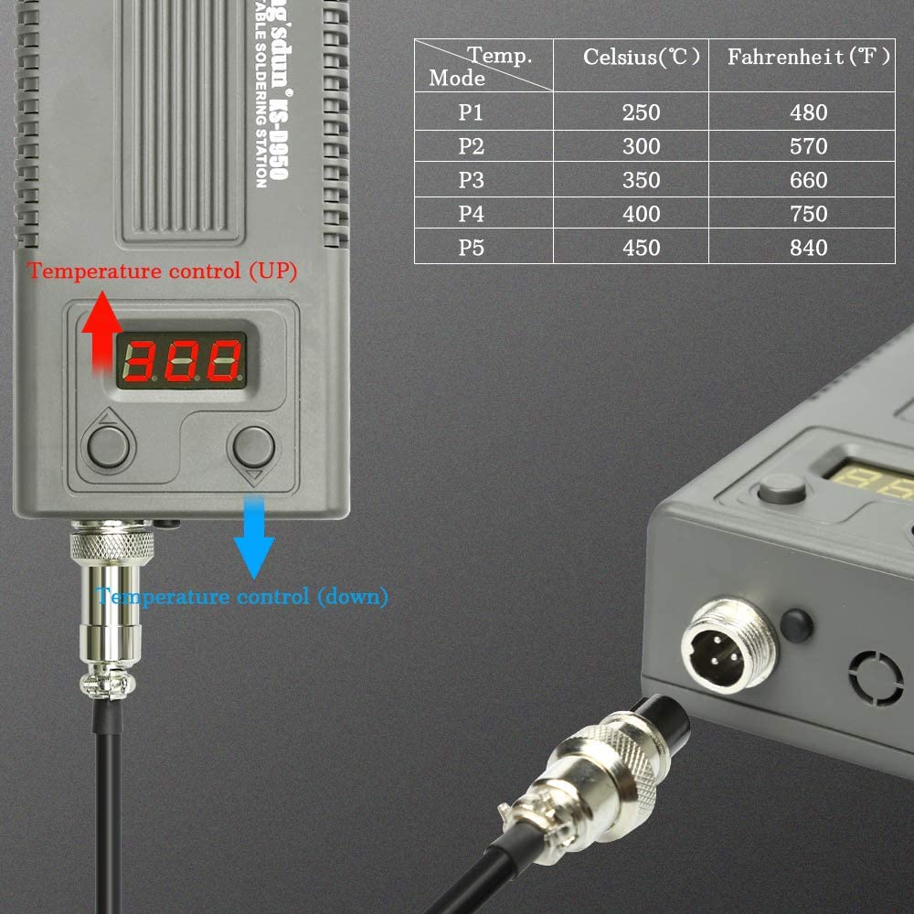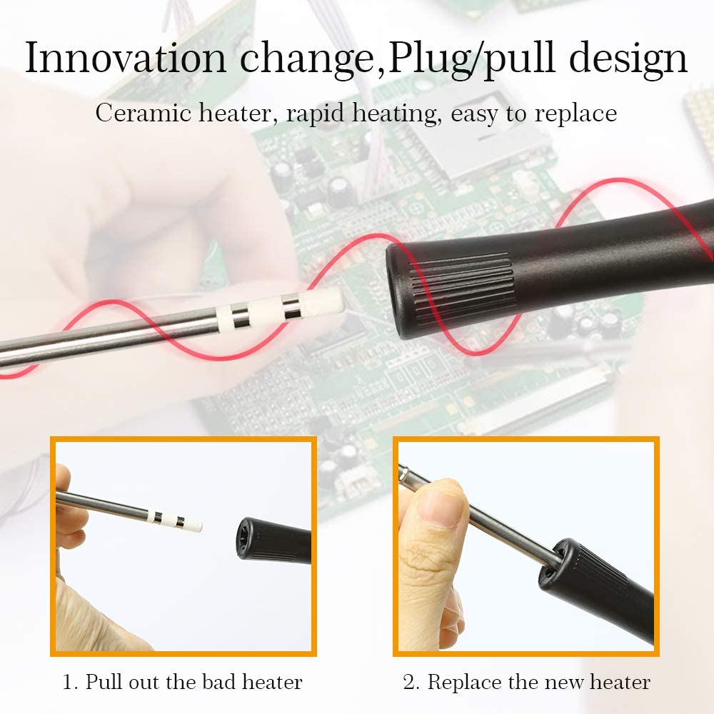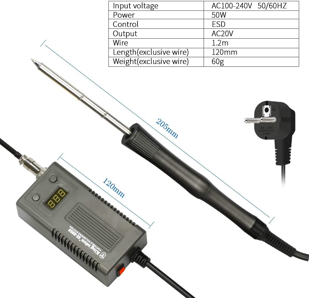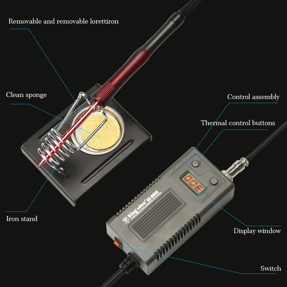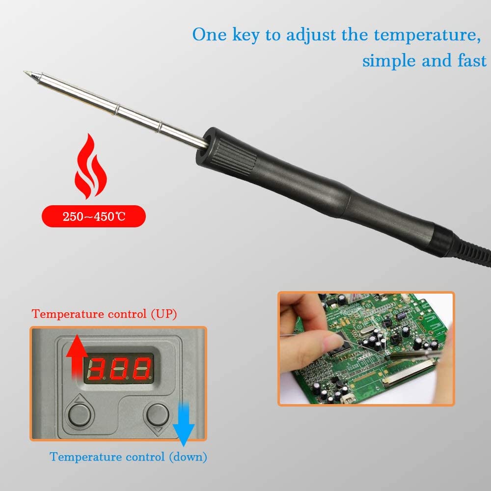 soldadura digital Kit:la cabeza del soldador no vuelve rápidamente quemada hasta la muerte.Hay un controlador de temperatura en el soldador termostático, que detiene el calentamiento, mejora la calidad de la soldadura y prolonga la vida del soldador cuando la temperatura de soldadura alcanza el valor establecido.