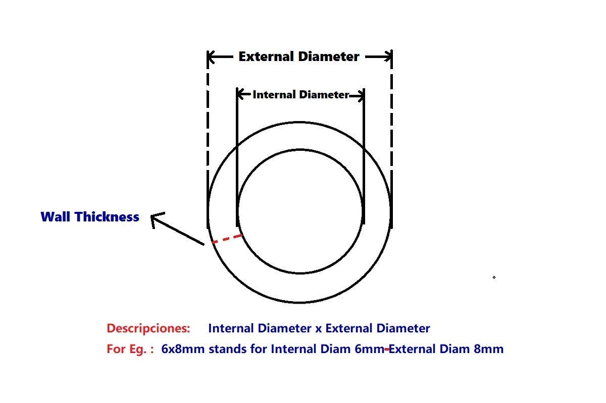 • Longitud: 5 metros Diámetro: 10 mm ID (aprox 0,394 ‘) x OD de 15 mm (aprox 0,591 «) Espesor: 2,5 mm (0,079»)